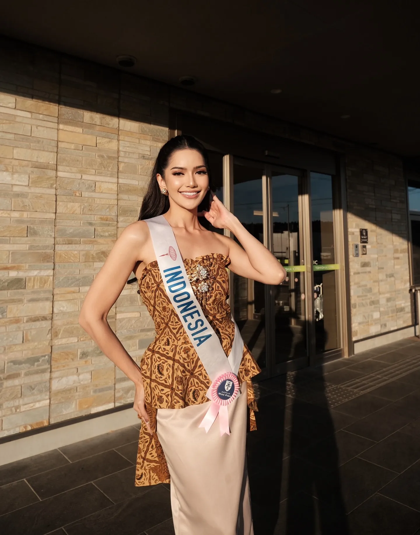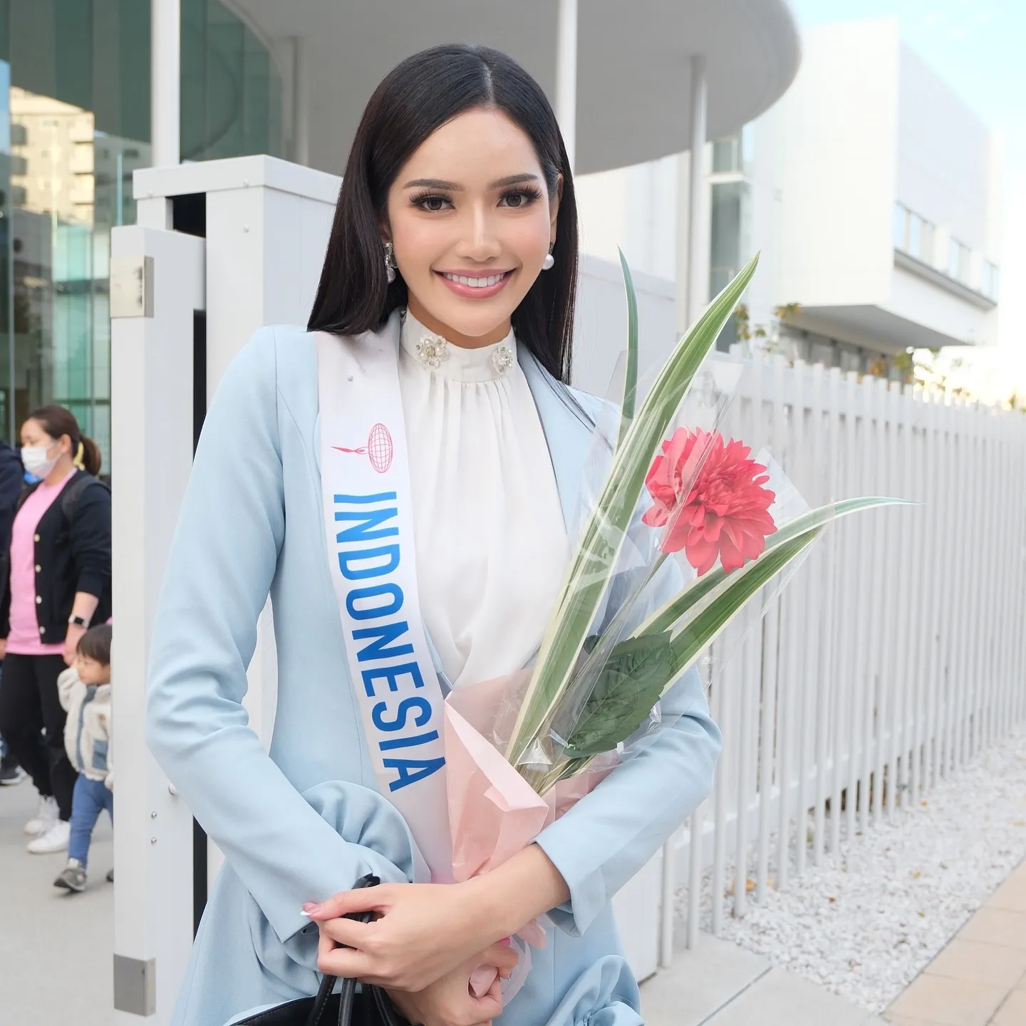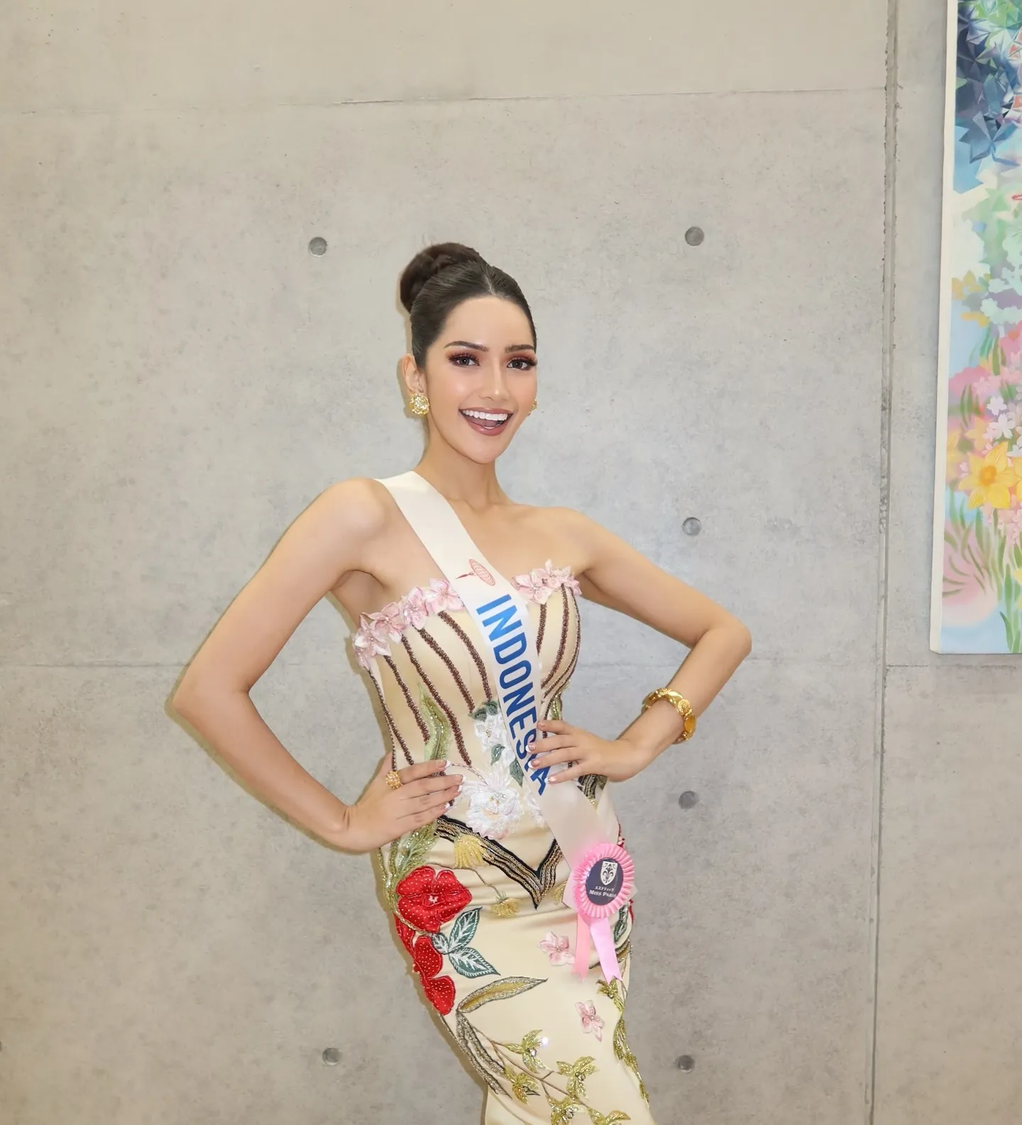 "Pray for me always, so that I can perform my best and honor Indonesia's name on the Miss International stage. I will hold the Indonesian flag close to my heart and embody the identity of Indonesian women who are graceful, strong, and full of love for the country," she wrote in her Instagram post.