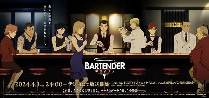 BARTENDER: GLASS OF GOD presents an elegant and philosophical depiction of the working world, where the profession of bartender is elevated to an art that requires skill, empathy, and a deep understanding of humanity. Each episode focuses on a different customer, showcasing how Ryū Sasakura uses his expertise not only to serve drinks but also to listen and provide solutions through the right cocktails.