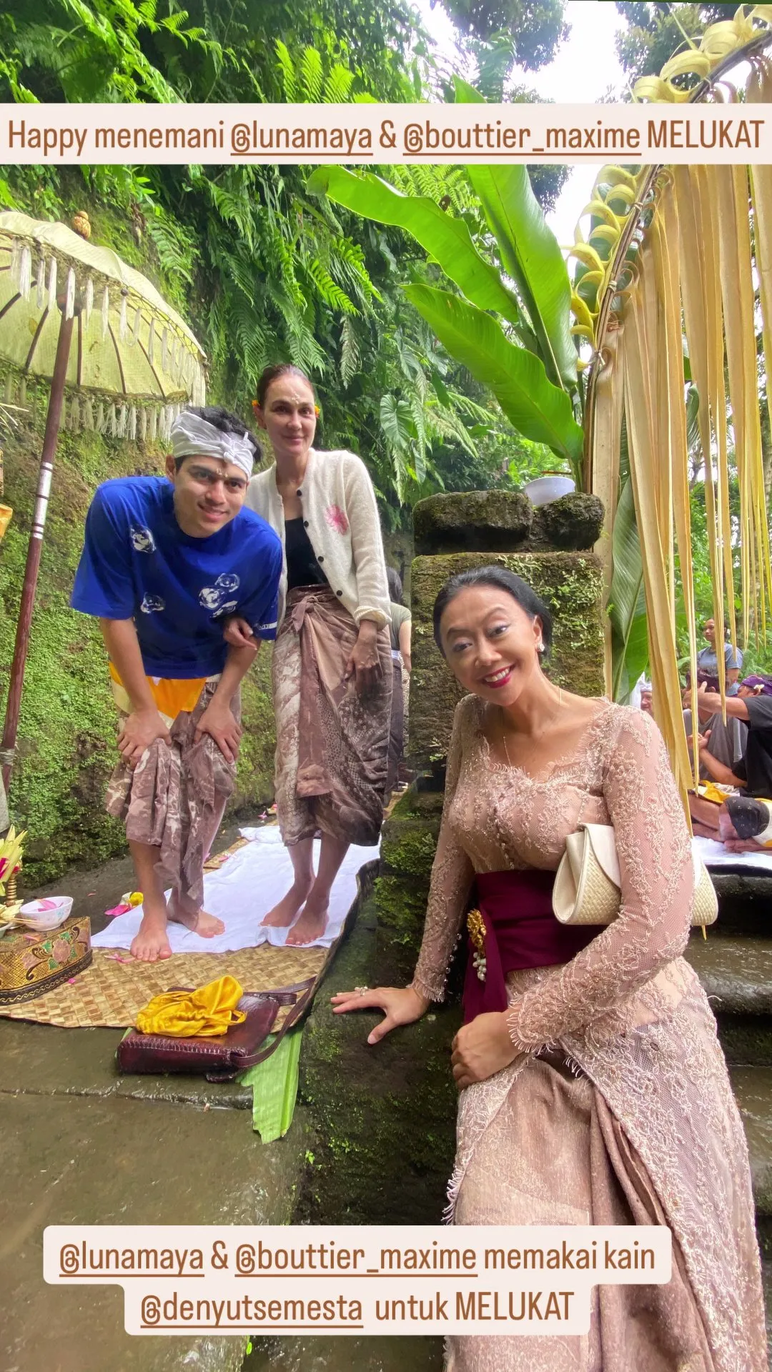 In the ceremony that took place in Bali, Luna Maya and Maxime Bouttier performed a purification ritual before their wedding ceremony. Asri Welas accompanied the celebrity couple during the purification process. Through her social media account, Asri Welas shared her journey, which reportedly required her to climb more than 200 steps to reach the purification location. Additionally, Luna Maya and Maxime Bouttier were seen wearing batik cloth from Denyut Semesta.