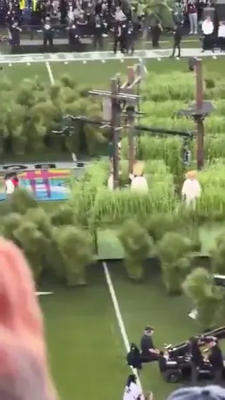 One of the most talked-about visual elements of Bad Bunny's performance was the appearance of the viral 'grass' covering the field. Who would have thought that the green grass was not an ordinary prop? Instead, it was hundreds of performers dressed in full-body grass costumes to create the visual of a Puerto Rican sugarcane field.