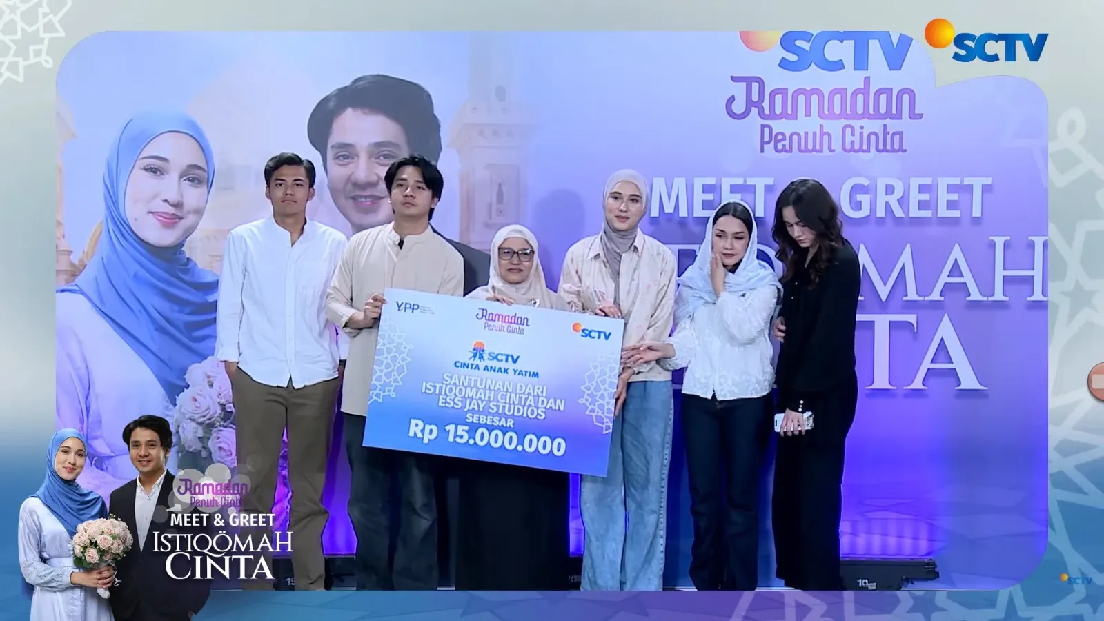 On this occasion, the production house Essjay Studios, which produces the soap opera �ISTIQOMAH CINTA�, donated IDR 15,000,000 to the Alqi Ceria Orphanage (Akbar ALQI Foundation) � Bogor through SCTV Cinta Anak Yatim.