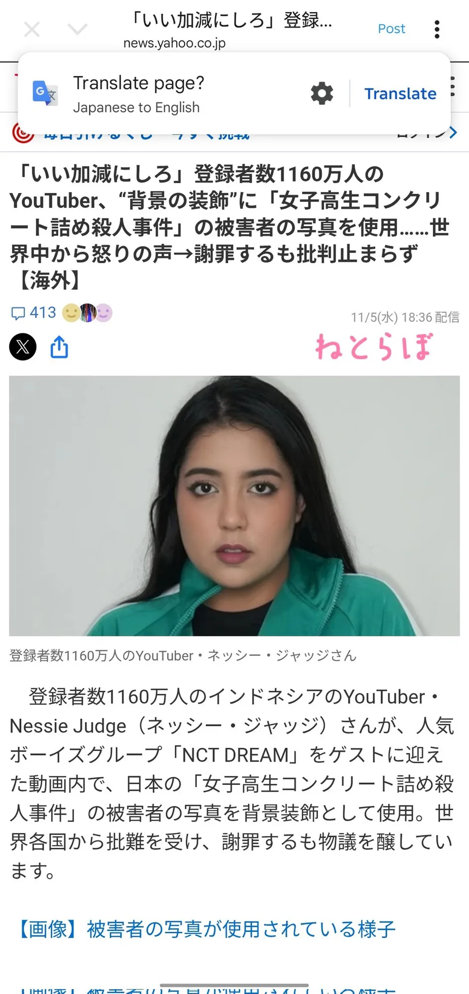 However, when it aired, what went viral was not about Nessie and NCT DREAM, but rather a photo that became one of the props for the content, which is a portrait of Junko Furuta, a victim of rape and brutal torture. This was seen as disrespectful to the late victim and her family.