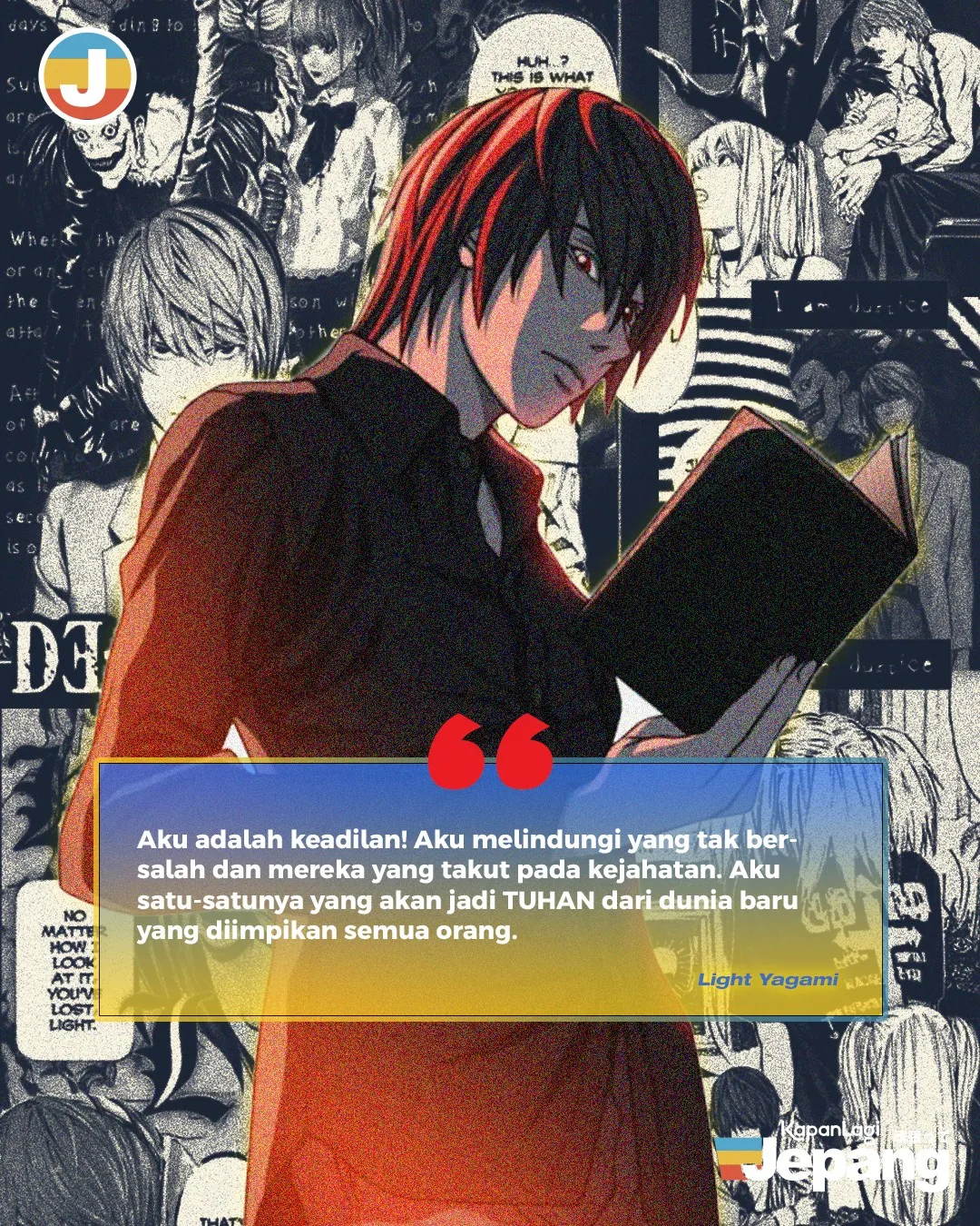 "I am justice! I protect the innocent and those who fear evil. I will be the only one to become GOD of the new world that everyone dreams of." - Light Yagami.