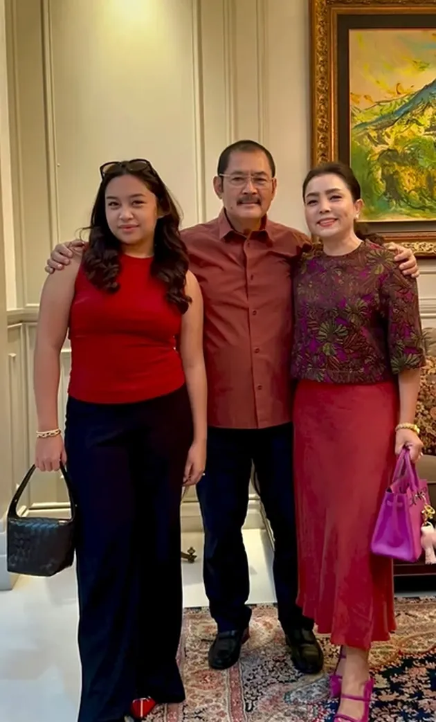 After a long separation from Khirani Trihatmodjo, Mayangsari and Bambang Triharmodjo are very happy when their daughter returns to Indonesia. Bambang and Khiran captured the moment together and they look very close to each other.