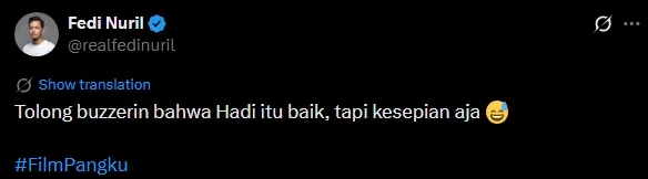 Fedi Nuril Asks Netizens to Be Buzzers for Hadi's Character in the Film PANGKU (credit: X/realfedinuril)