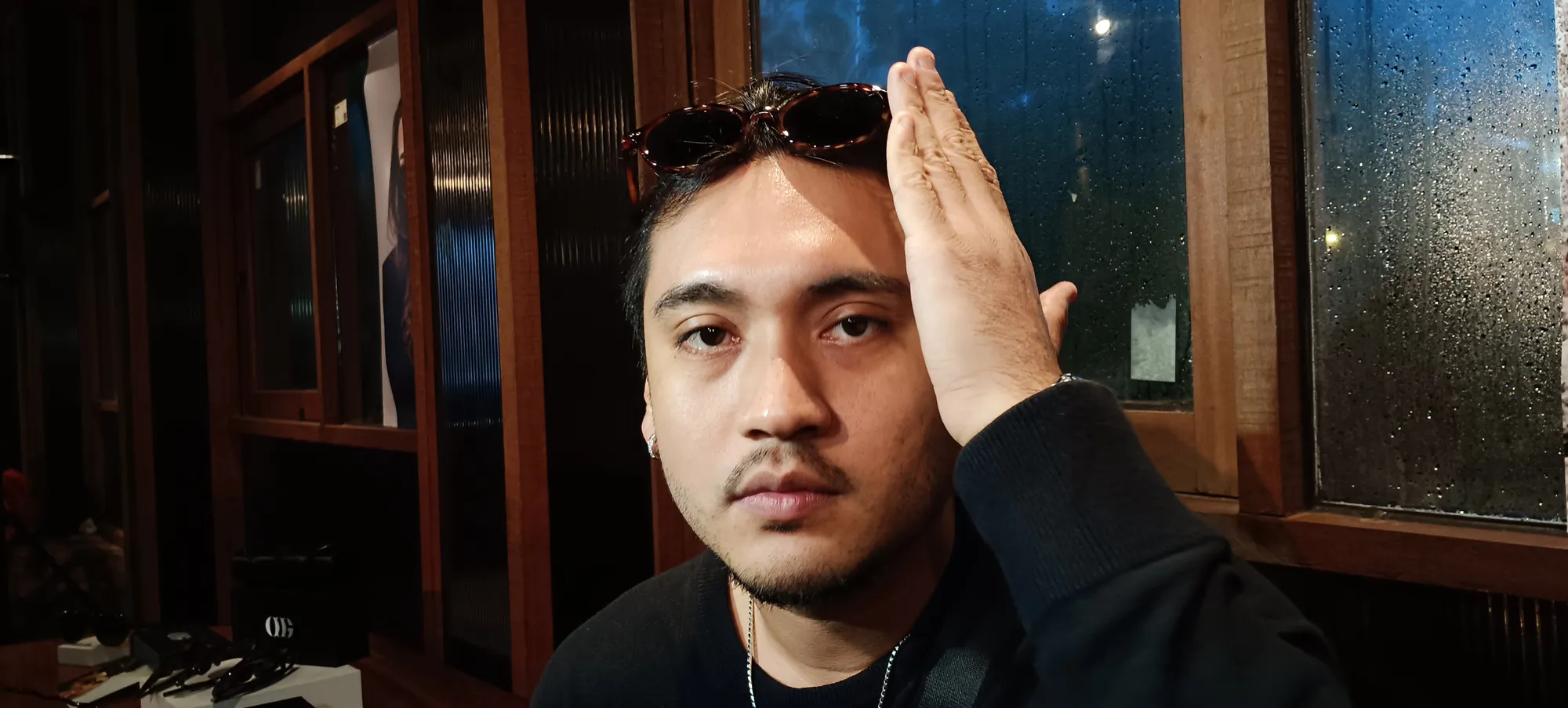 Giorgino Abraham Wears Sunglasses During the Interview (cr:KapanLagi.com/Sahal Fadhli)