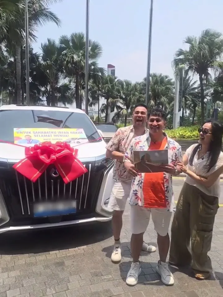 "Using the new car that was given by Raffi Ahmad for this 50th anniversary," said Irfan enthusiastically. He is very excited to immediately experience the comfort and luxury of the car gifted by his friend. This gift will be very useful for Irfan's daily activities.