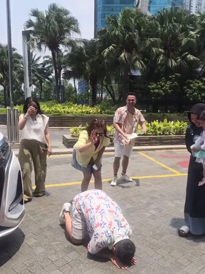 Irhan Hakim prostrates in gratitude for receiving a car gift (credit: Instagram.com/irfanhakim75/)