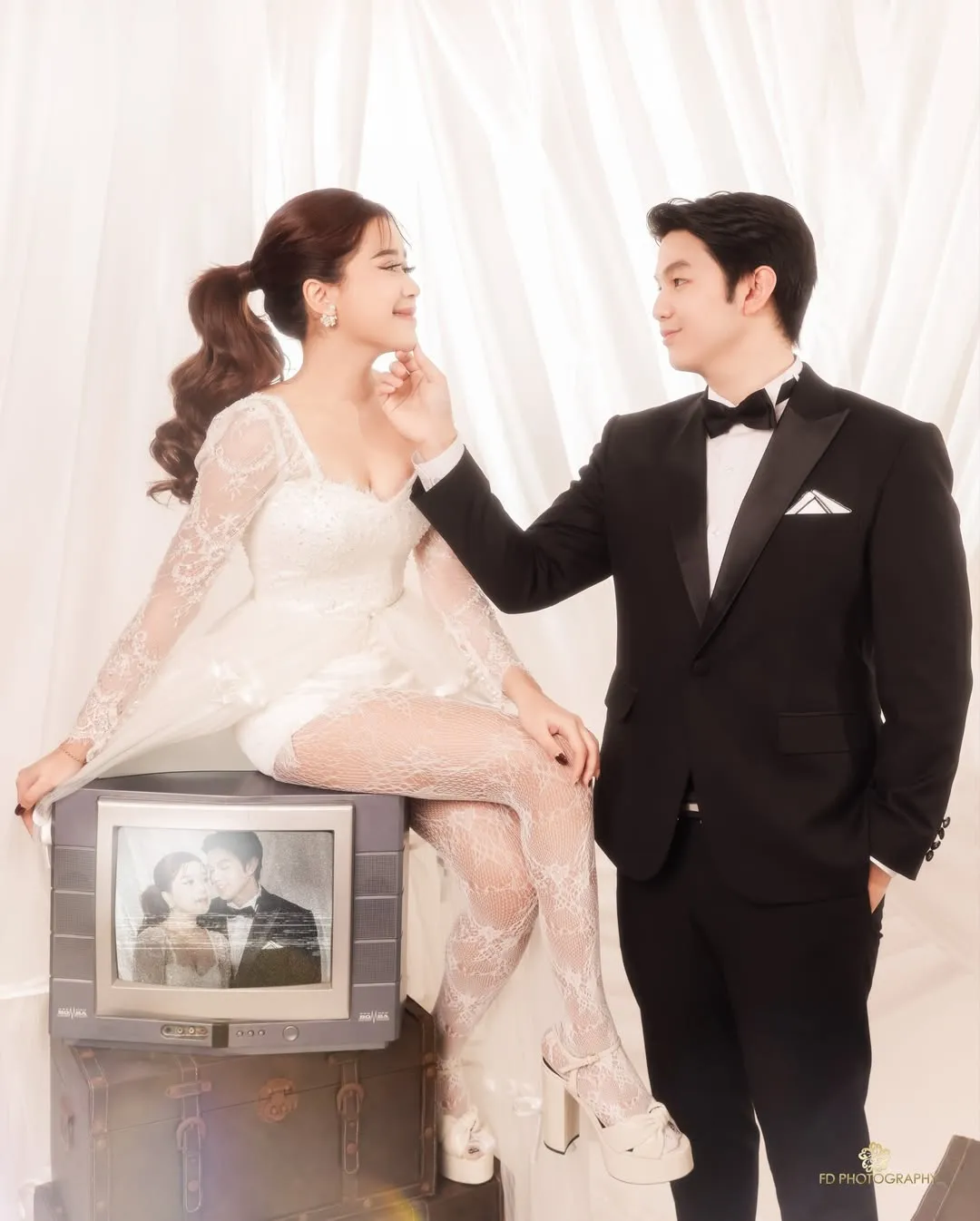 Brisia Jodie looked stunning in a classic white wedding dress inspired by Kate Middleton, complete with a tiara adorning her head. Meanwhile, Jonathan Alden looked dashing and matched in a black suit.