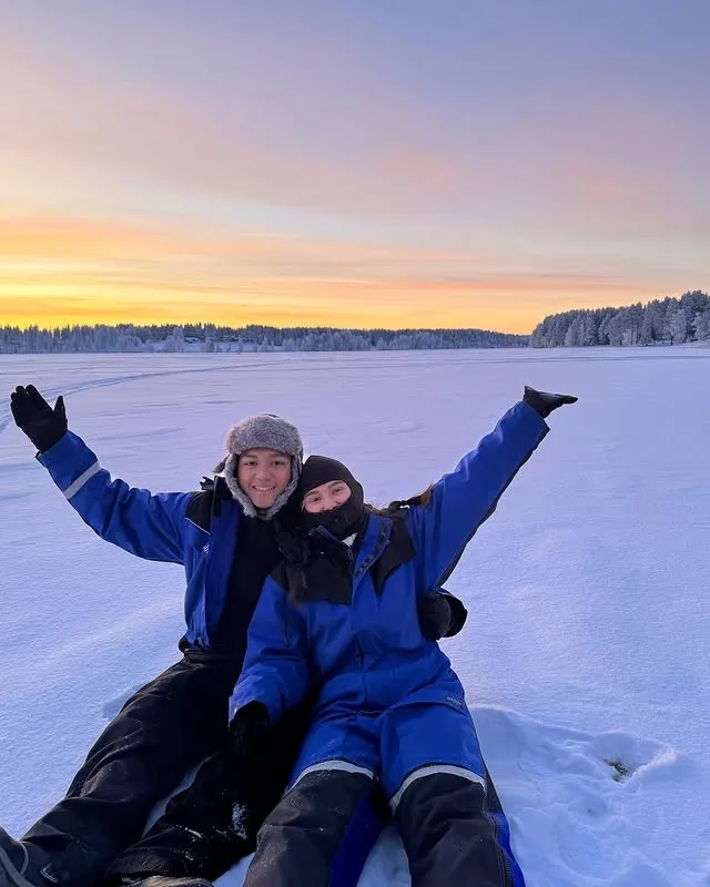 Azriel and Sarah in the snow © instagram.com/azriel_hermansyah