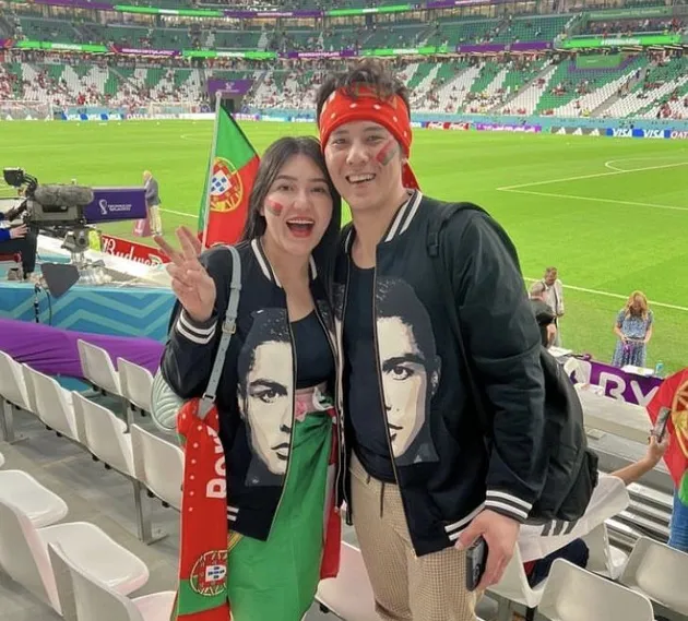 Via Vallen and her husband, Chevra Yolandi, flew to Qatar to watch the World Cup matches. They were willing to queue to buy tickets to watch Cristiano Ronaldo and the Portuguese national team play.