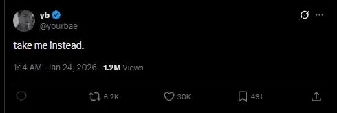 In a post on his official X account (@yourbae) on Friday (23/1/2026), Reza expressed his deep sorrow with a short yet very touching sentence.