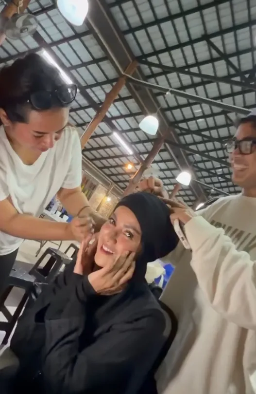 Olla Ramlan wears a black hijab on the shooting location © instagram.com/ollaramlan