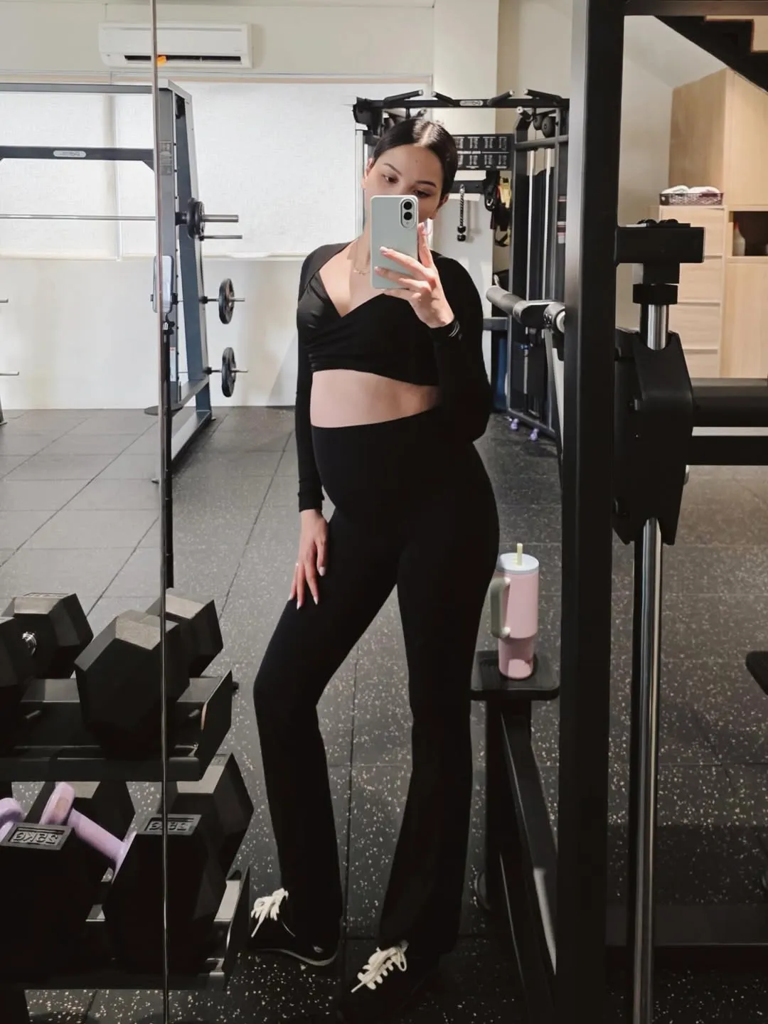 Through her latest post, Alyssa shared a mirror selfie while at the gym. She wore an all-black sports outfit that clearly showed the silhouette of her baby bump.