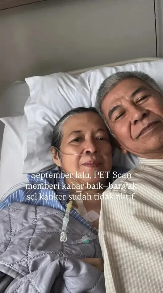 In September, the PET Scan results showed that many cancer cells are no longer active. This is a snapshot of Mother Ria accompanied by her beloved husband, Allan Rachman. Family support is indeed extraordinary for Mother Ria.