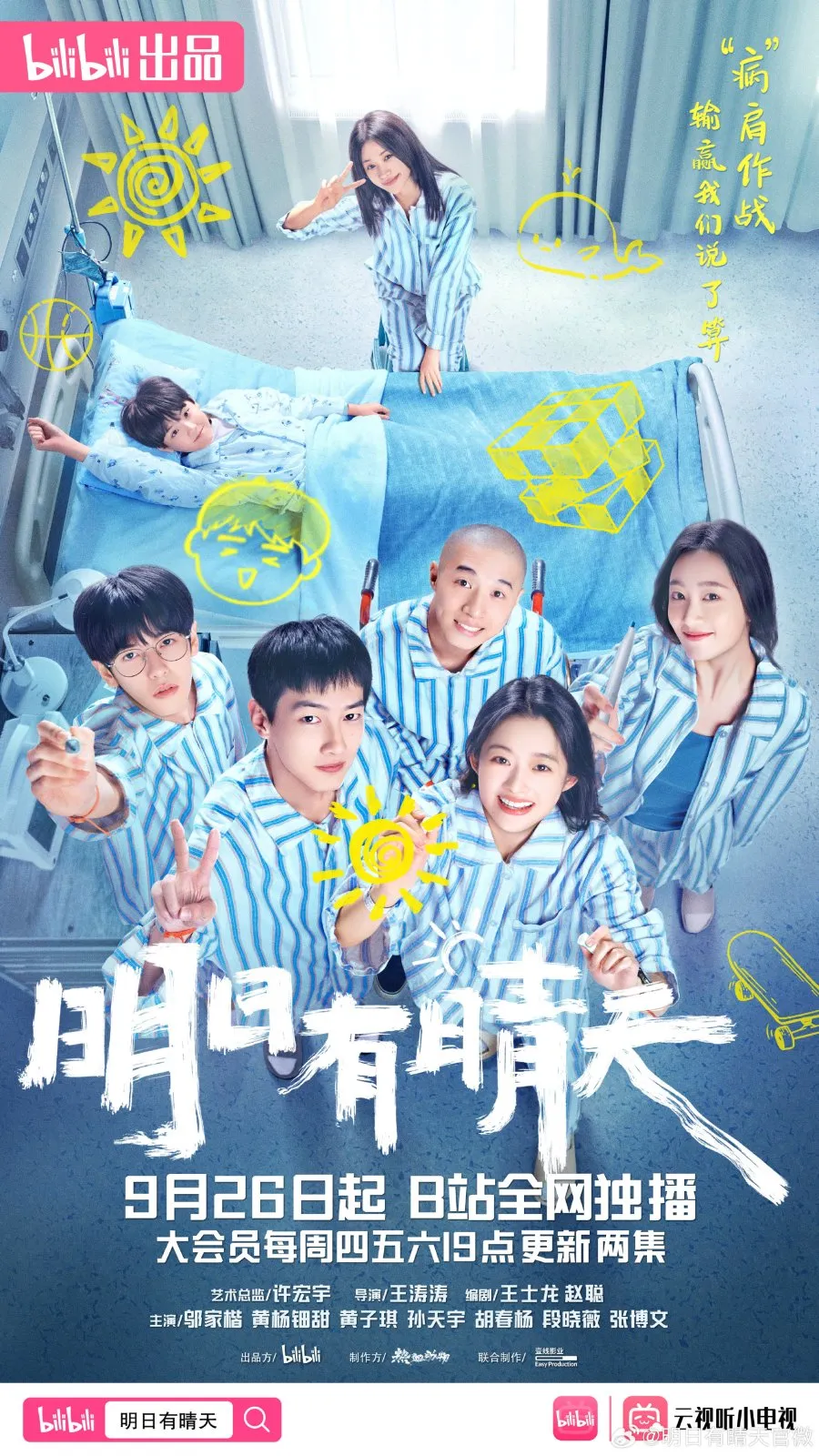 In the drama Ming Ri You Qing Tian, Huangyang Tian Tian plays Lu Yu Qing, one of the young patients undergoing long-term treatment. Despite being sick, this character has a strong spirit that is infectious to other patients.