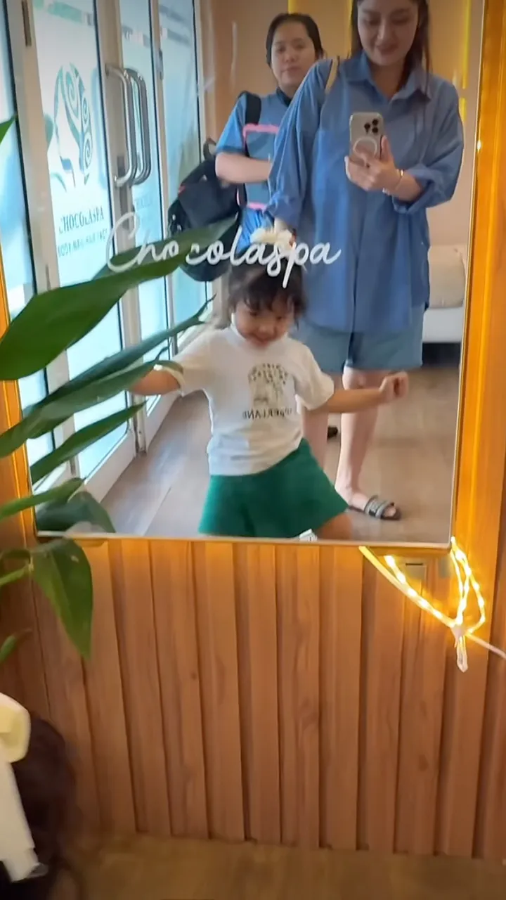 In her post, the hit single singer of Lagi Syantik looks adorable with her daughter's funny antics as she is excited to go to the spa. With her cute style, Xarena appears relaxed in comfortable casual wear suitable for her age.