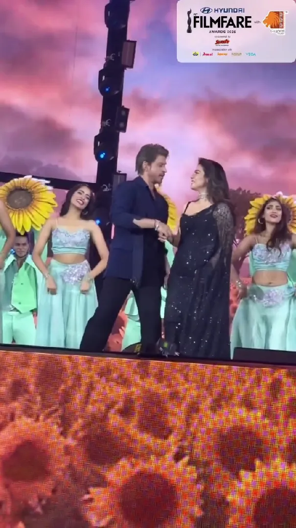 Their performance on the Filmfare stage was one of the biggest highlights of the night. Shah Rukh Khan looked dashing in a classic black tuxedo, while Kajol dazzled in an elegant black saree that showcased her distinctive charm.