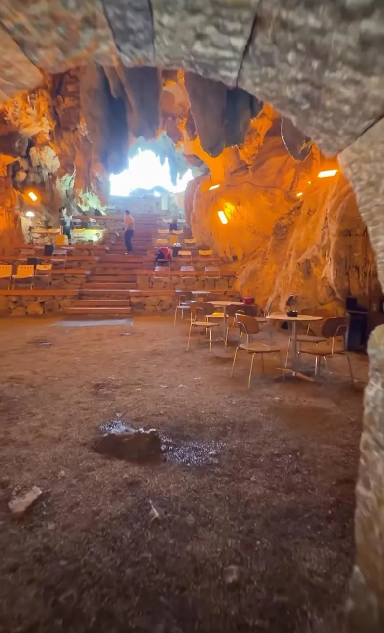 Visitors can sip various coffee options while enjoying the view of the stalactites and the sound of trickling water that creates a unique calming atmosphere. This blend of natural aesthetics and modern coffee culture makes the place different from typical cafés.