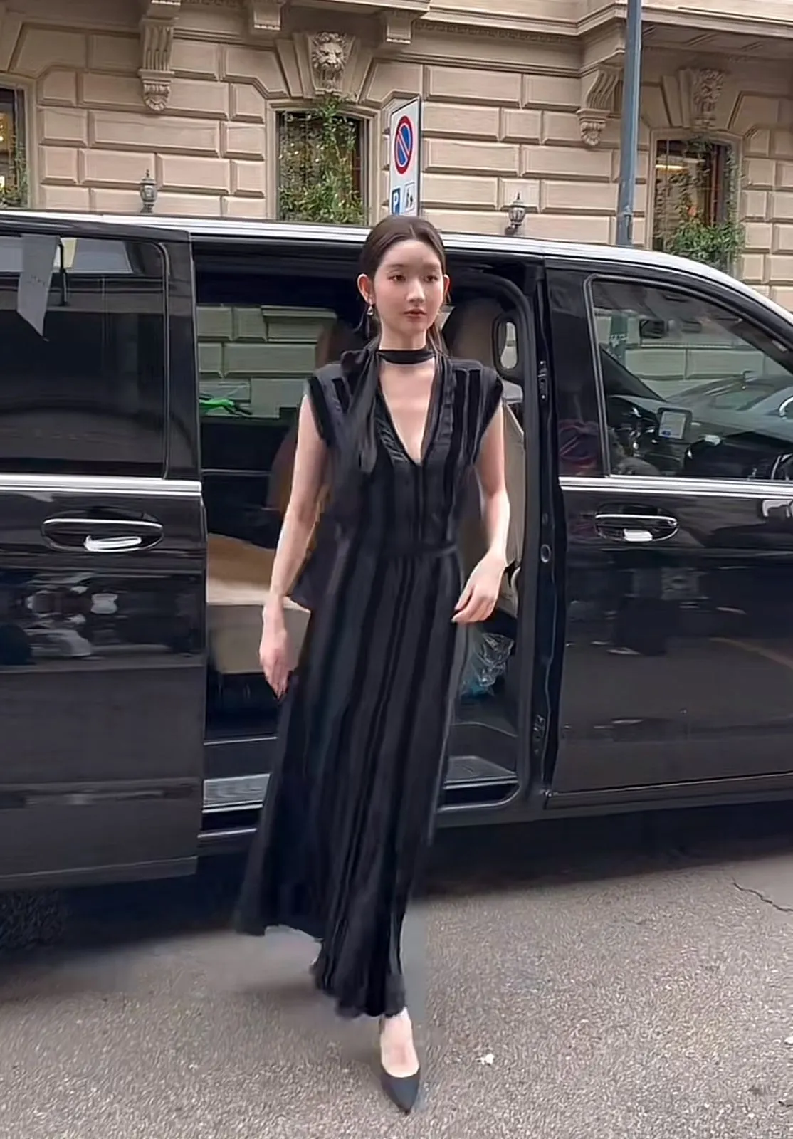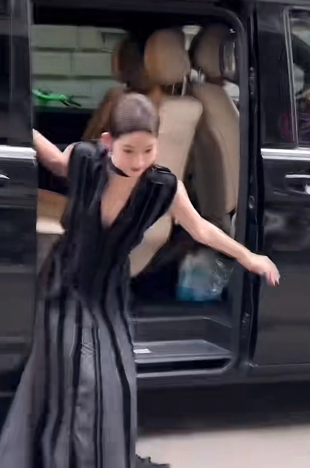 In the recording, Wang Yuwen appears to lose her balance momentarily when getting out of the car. Her quick movement makes the moment seem like it could end embarrassingly.