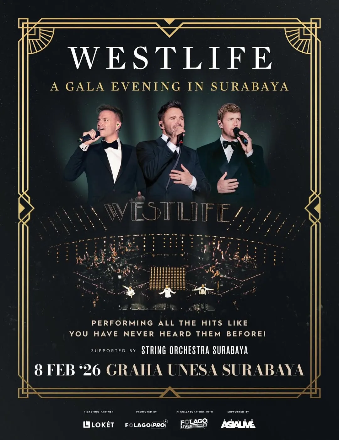 Kapanlagi.com - Westlife returned to Indonesia, with Surabaya being the first city visited this year by Shane Filan, Nicky Byrne, and Kian Egan. The Westlife Gala Evening in Surabaya was lively and memorable for the three Irish singers and their fans. Especially since the concert at Graha Unesa was accompanied by an orchestra.
