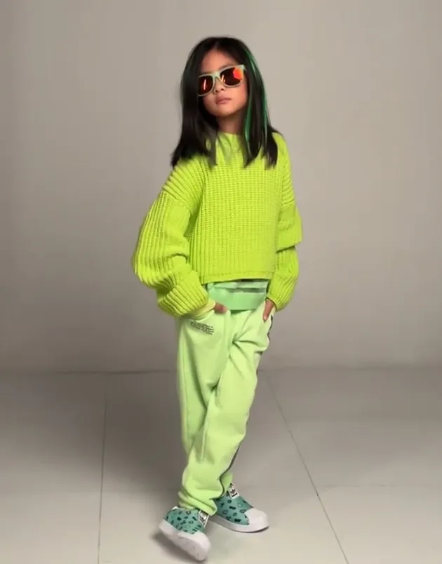 Zoey, Joanna Alexandra's third daughter, just had her first photoshoot. In this moment, Joanna expressed how happy her daughter is to be able to pose in front of the camera. Interestingly, Zoey styled herself like Billie Eilish, wearing all green neon outfits.