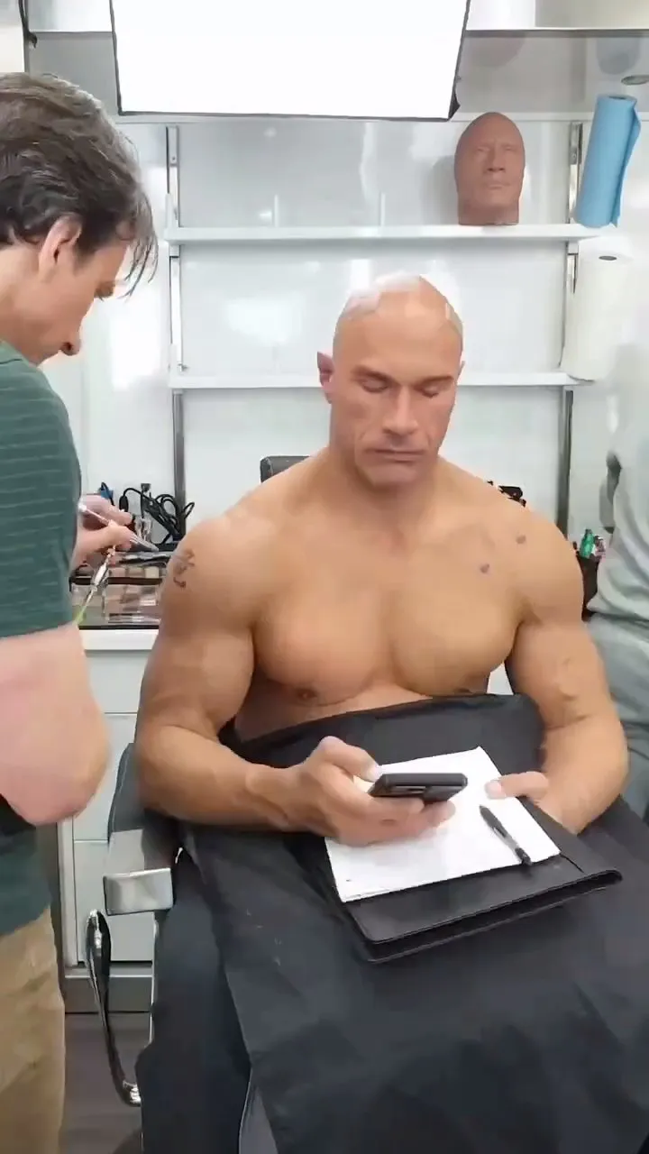 The Prosthetic Process in the film THE SMASHING MACHINE (credit: Instagram.com/therock