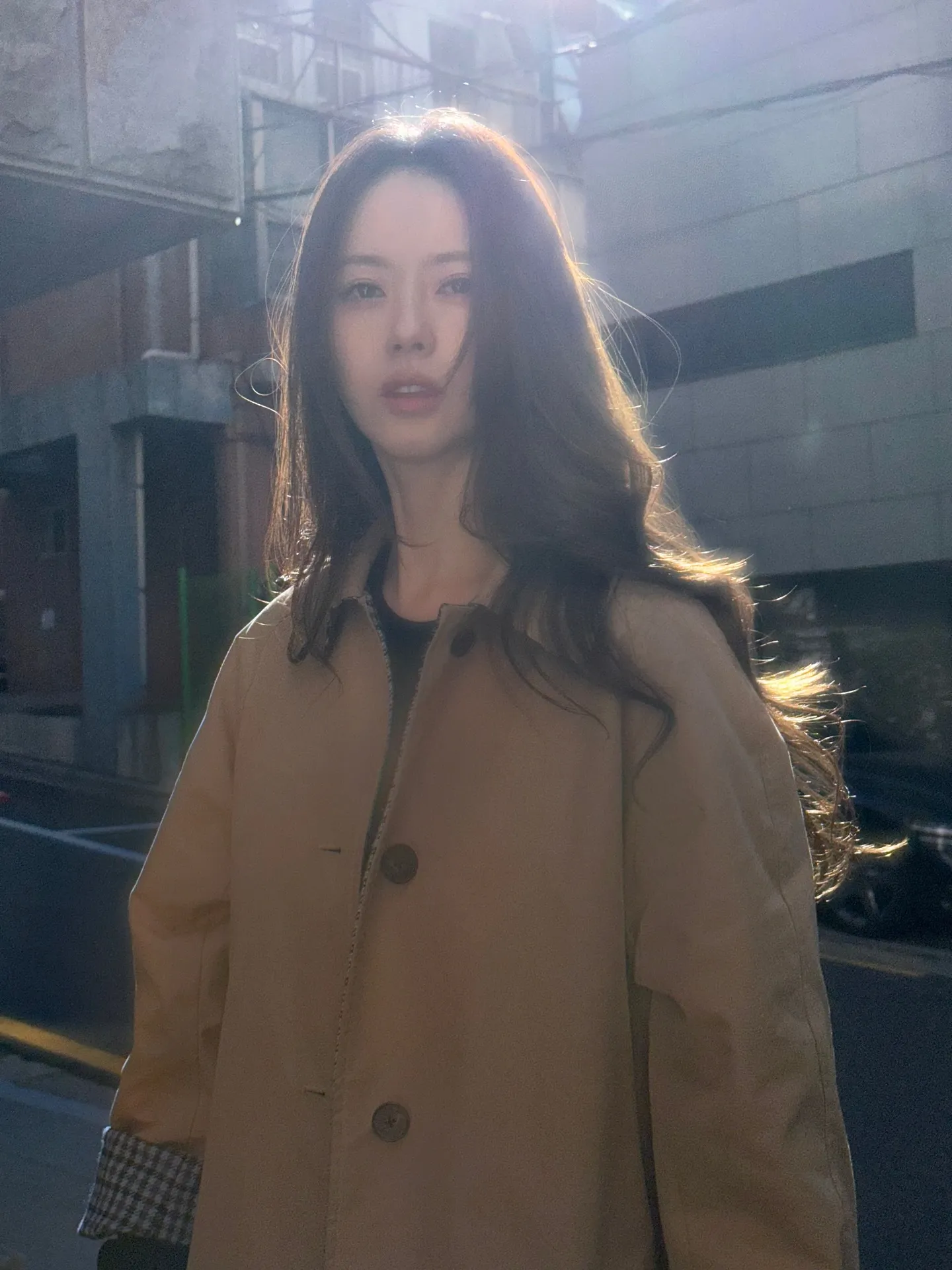 Go Ara appeared in a black hoodie and a brown suede jacket, with flawless makeup and radiating a mesmerizing aura thanks to the golden hour.