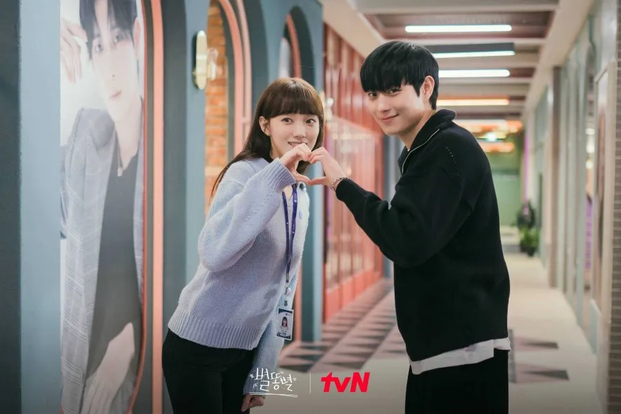 In the romantic comedy drama SH**TING STARS, Kim Young Dae plays Kong Tae Seong, a top star who often clashes with the PR team leader, O Han Byeol, played by Lee Sung Kyung.