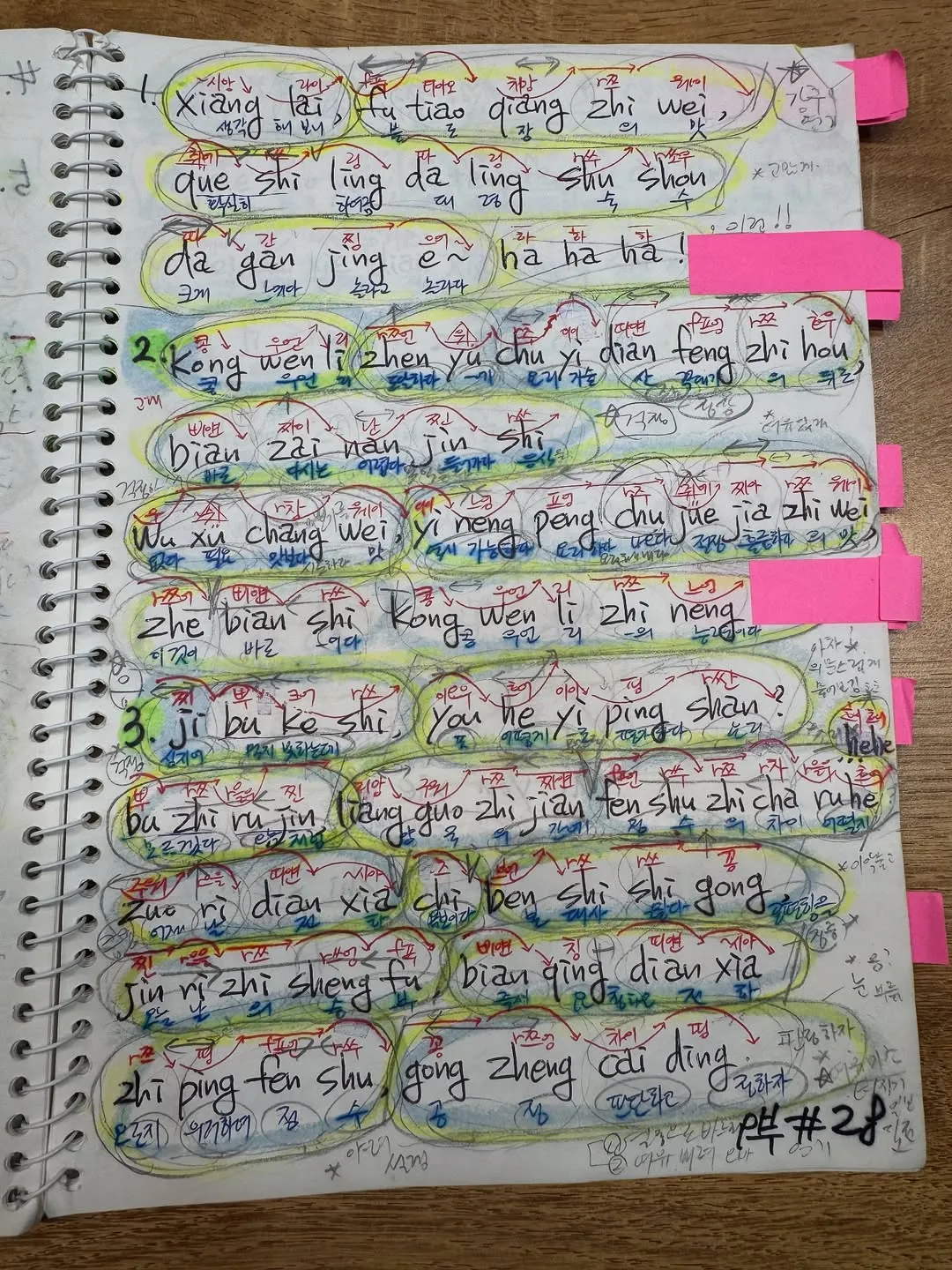 On October 4, 2025, he shared his personal study notes on social media, showcasing a detailed process from handwritten Mandarin characters, pinyin, to pronunciation. The post quickly went viral and was highlighted by thousands of Korean netizens as well as international fans.