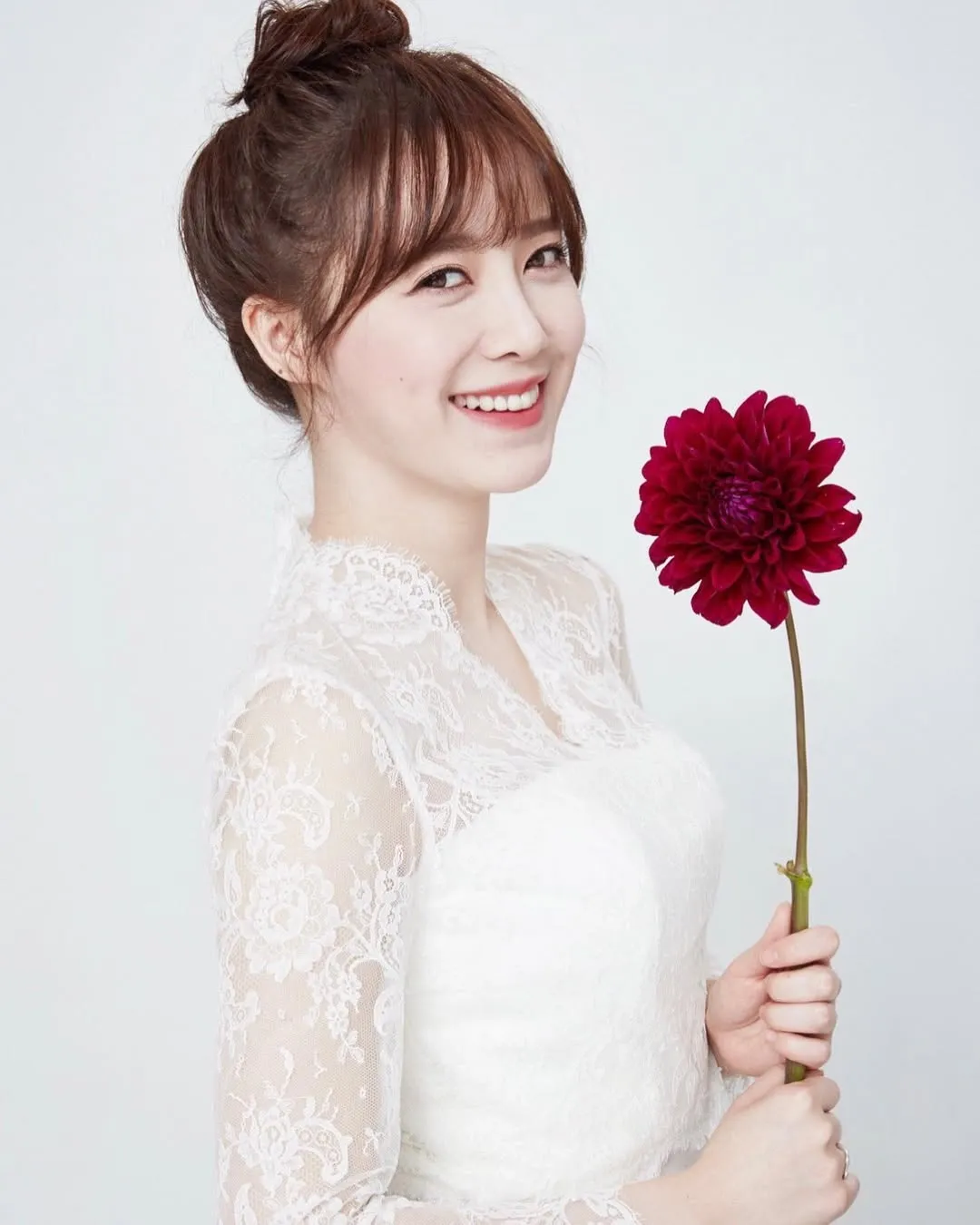 Goo Hye Sun poses with a neutral expression, yet her beauty shines through clearly with minimal makeup. Her youthful appearance proves that the spirit of learning knows no age.
