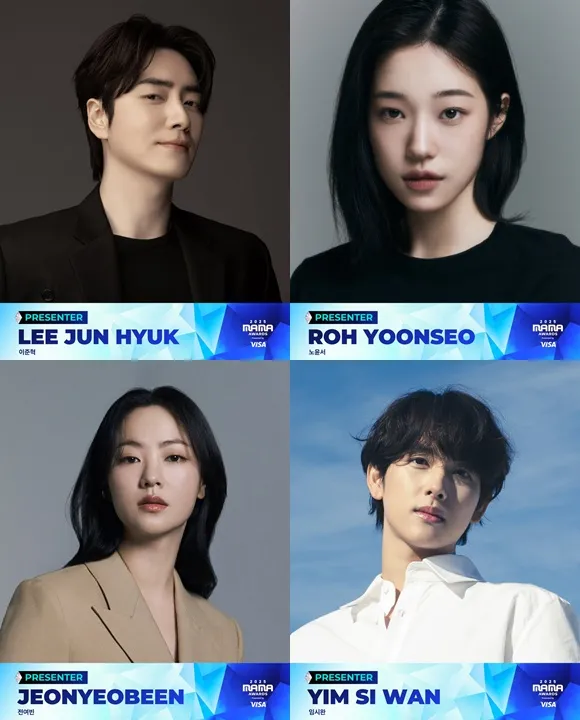 The list of presenters for the MAMA Awards 2025 includes big names such as Go Yoonjung, Noh Sanghyun, Roh Yoonseo, Park Hyungsik, Shin Seunghun, Shin Yeeun, Shin Hyunji, Arden Cho, Ahn Eunjin, Ahn Hyoseop, Lee Kwangsoo, Lee Dohyun, Lee Soohyuk, Lee Junyoung, Lee Junhyuk, Yim Siwan, Jang Doyeon, Jeon Yeobeen, Cho Saeho, Jo Yuri, Cho Hangyeol, Ju Jihoon, Cha Jooyoung, Choi Daehoon, and Hyeri.