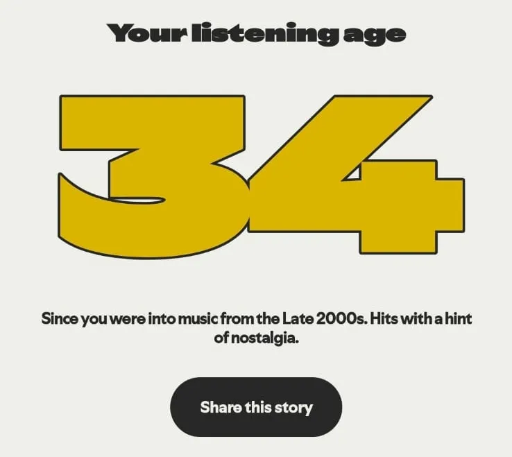 Spotify Wrapped 2025 also presents a unique feature to read the era of music you listen to, whether it’s oldies, 90s music, or even the latest. From all the collected data, Spotify will give you a Listening Age that corresponds to your experience.